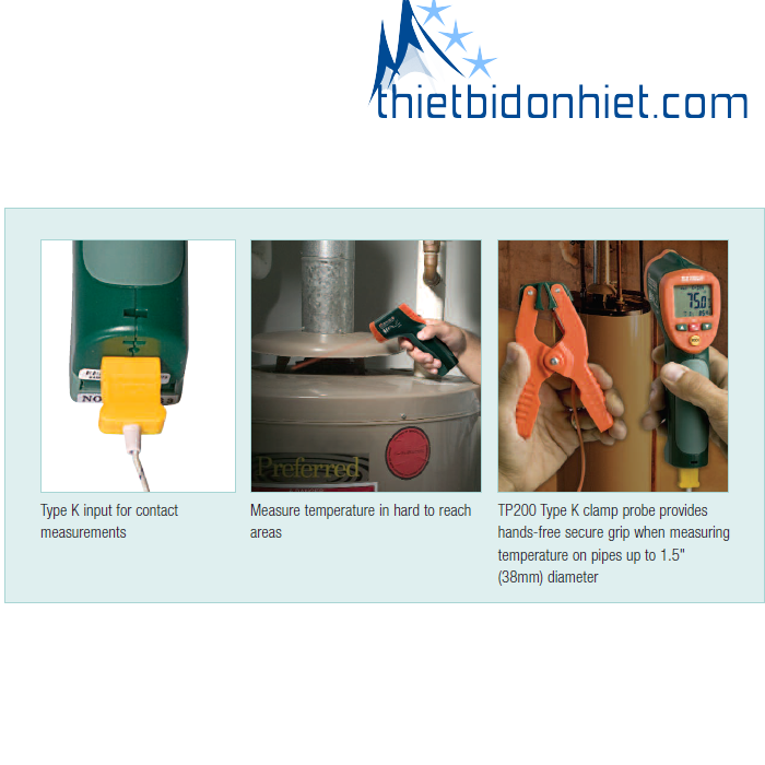 • Phạm vi nhiệt độ rộng cho nhiệt độ IR và cặp nhiệt  kiểu K