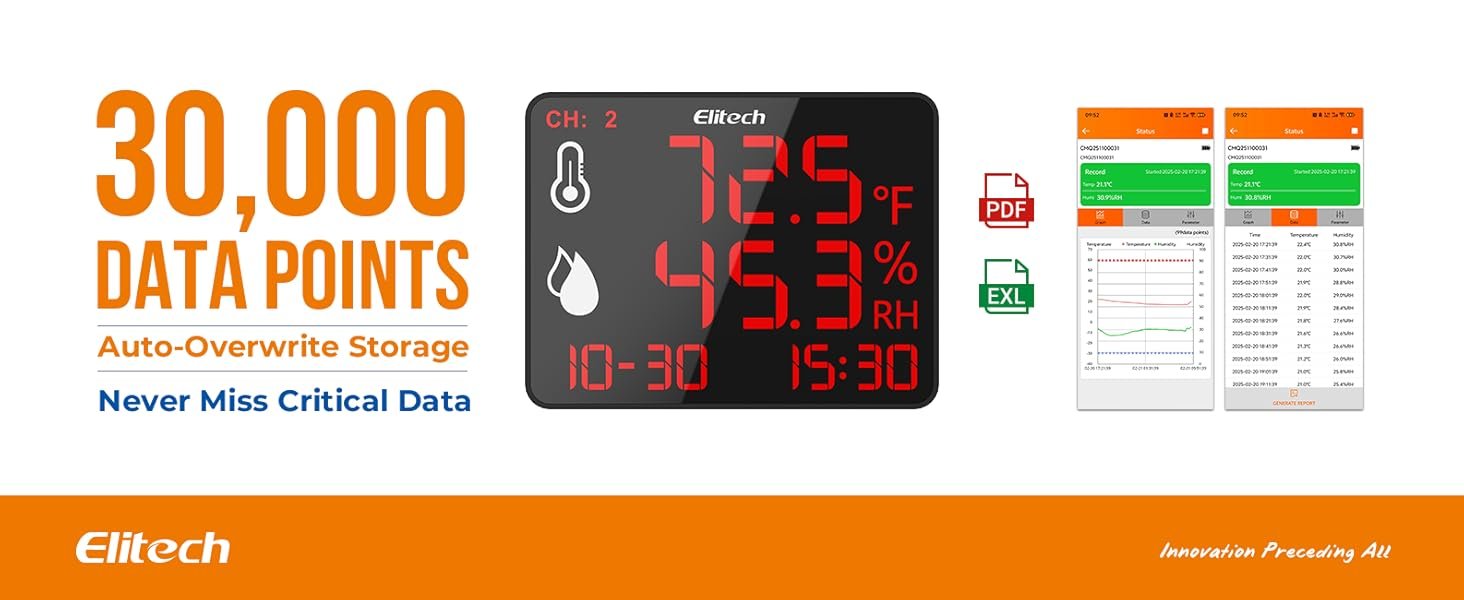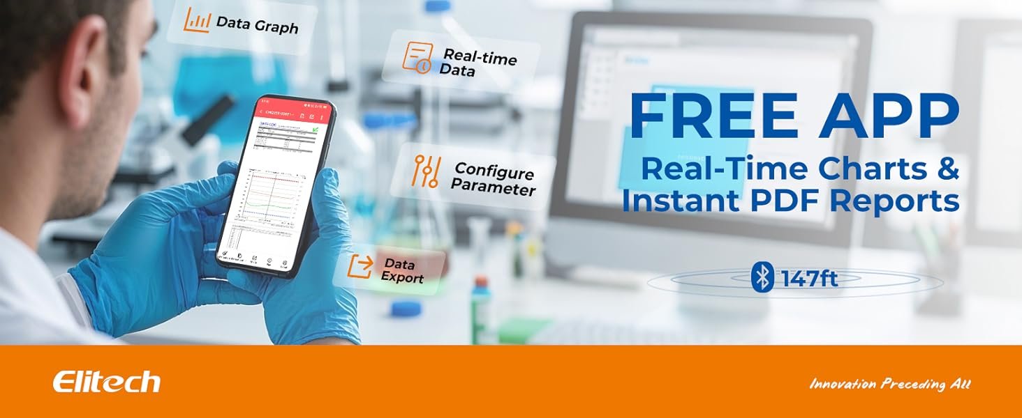 Elitech DR-230 là thiết bị ghi dữ liệu nhiệt độ và độ ẩm kỹ thuật số cao cấp, hỗ trợ kết nối Bluetooth, cho phép theo dõi dữ liệu dễ dàng qua điện thoại hoặc máy tính bảng. Thiết bị lý tưởng để sử dụng trong nhà máy, kho xưởng, nhà kính, phòng thí nghiệm, bệnh viện và các khu vực yêu cầu độ cần theo dõi nhiệt độ và độ ẩm.
